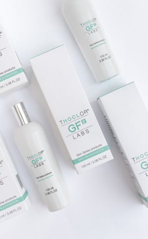 GF2 Skin Rejuvenation draait de schade terug veroorzaakt door externe factoren zoals de zon en andere omgevingsfactoren. Vanwege de antibacteriële en ontstekingsremmende effecten is het ook zeer goed toe te passen bij de behandelingen van acne en rosacea. Thoclor vermindert roodheid en pijn in besmette gebieden. Dagelijk gebruik na het reinigen van de huid vóór de lotion of conditioner zorgt voor een tot 60% verhoogde opname van werkstoffen, die daarna aangebracht worden. Het resultaat is verjonging, rimpelvermindering en betere hydratatie.